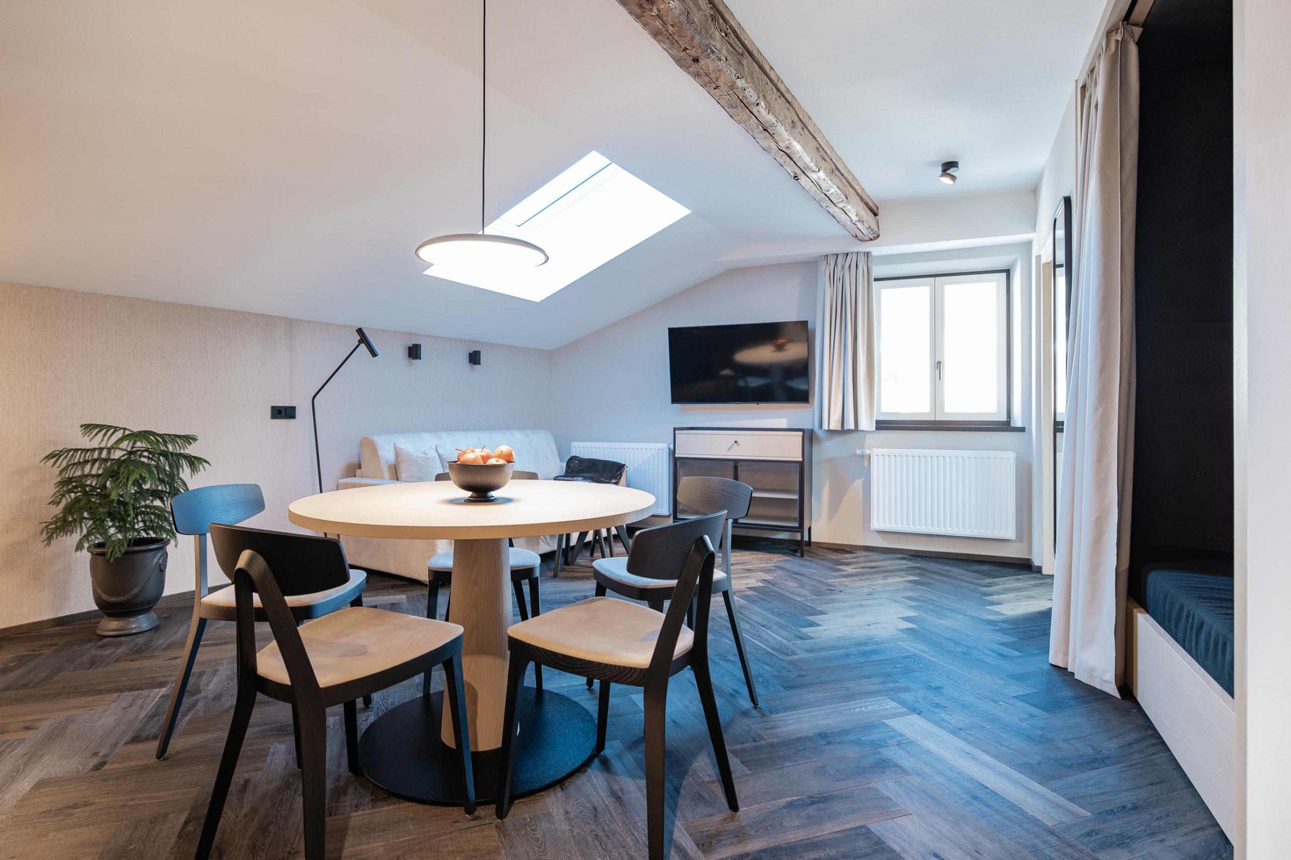 In questo ampio studio tutto ruota intorno al benessere. Sonni profondi nei comodi letti, sauna privata e spazio sufficiente per quattro persone. Qui lusso e design si sposano perfettamente.
