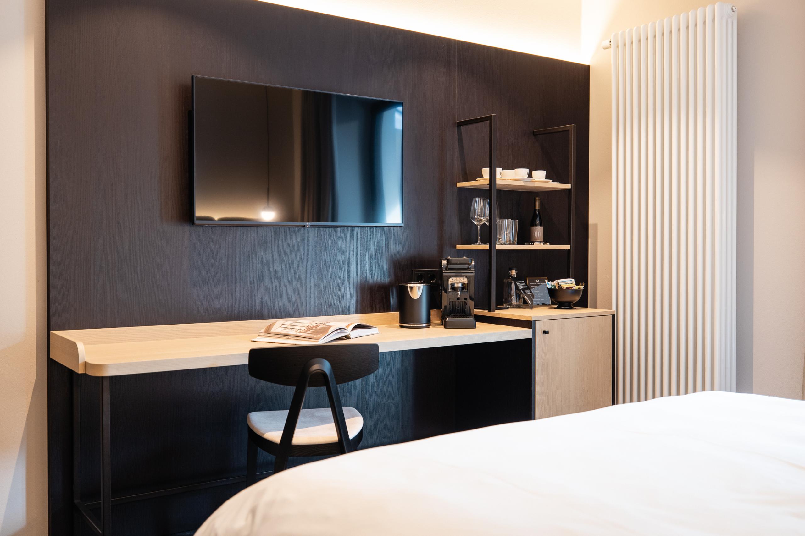 Biancheria da letto e asciugamani di alta qualità | Borsa wellness con accappatoio, ciabatte e teli sauna | Prodotti selezionati della linea cosmetica vegana Element_ry con fico e sandalo | Asciugacapelli | Specchio cosmetico | Bollitore | Macchina da caffè | Smart TV | WiFi | Telefono | Cassaforte | Guestbook digitale | Edicola online